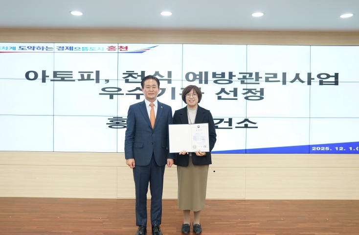 [뉴스다컴] 홍천군보건소는 2025년 아토피, 천식 예방관리사업 추진 성과를 인정받아 질병관리청장 표창을 수상했다고 밝혔다.