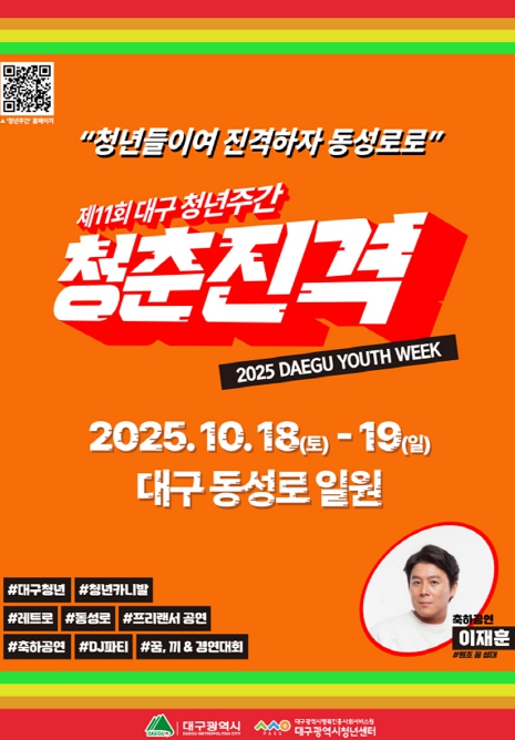 [뉴스다컴] 대구광역시는 10월 18일부터 19일까지 이틀간, 동성로 일대(CGV대구한일~동성로28아트스퀘어~구 중앙파출소)에서 ‘2025 대구청년주간’을 개최한다.