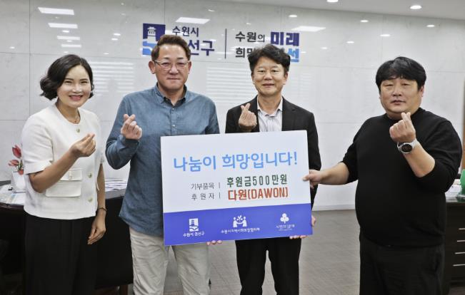 [뉴스다컴] 수원시 권선구는 지난 29일, 관내 기업 다원에서 후원금 오백만원을 기탁했다고 밝혔다.
