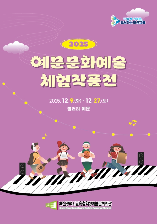[뉴스다컴] 부산광역시교육청 학생예술문화회관은 9일부터 27일까지 학생예술문화회관 갤러리 예문에서 ‘2025 예문문화예술체험작품전’을 개최한다.