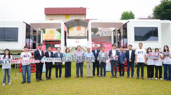 [뉴스다컴] 충남교육청과 KT는 도서산간 및 농어촌 지역 청소년들의 인공지능(AI) 교육 및 체험 기회 확산을 위해 이동형 인공지능(AI) 체험 공간인 ‘케이티 인공지능 스테이션(KT AI Station)’ 시연회 및 ‘찾아가는 킷 데이(KIT-DAY)’를 16일 부여 석성중학교에서 개최했다.