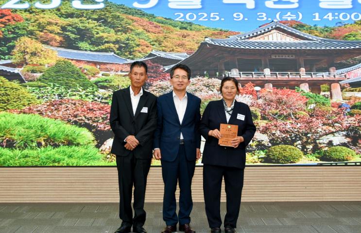 | ▲ 영주시 자랑스러운 시민상을 수상한 이대성,황영숙 부부(가운데 유정근 부시장) |