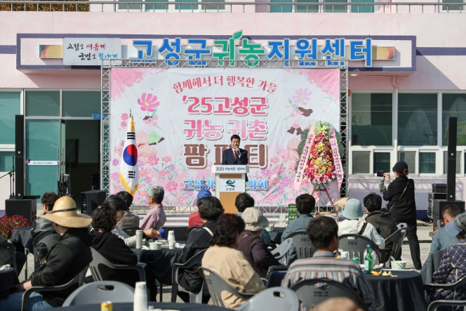 [뉴스다컴] 고성군은 11월 5일 고성읍 덕선리 귀농지원센터에서 ‘2025년 귀농·귀촌 팜파티’를 성황리에 개최했다.