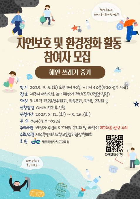 특히 학교와 학부모가 함께 참여함으로써 교육공동체의 협력을 다지고 학생들에게는 ‘내가 살고 있는 제주의 환경을 내가 먼저 지킨다’는 주인의식과 공동체 정신을 직접 보여주는 뜻깊은 시간이 될 것으로 기대된다.