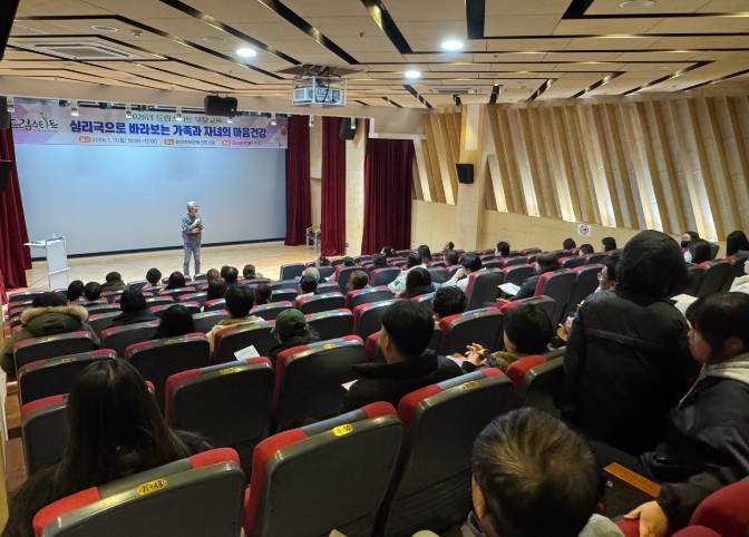 [뉴스다컴] 금산군은 지난 17일 여성창의문화센터 8층 강당에서 드림스타트 가정의 부모 등 100여 명이 참석한 가운데 ‘심리극으로 바라보는 가족과 자녀의 마음건강’ 부모교육을 개최했다.