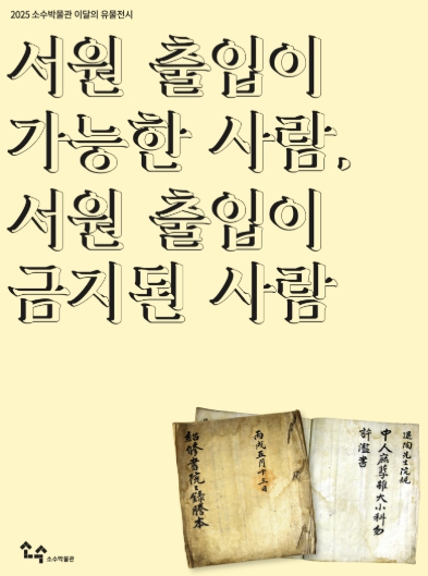 [뉴스다컴] 영주시 소수박물관은 12월 1일부터 2026년 2월 22일까지 이달의 유물전시 ‘서원 출입이 가능한 사람, 서원 출입이 금지된 사람’을 개최한다.