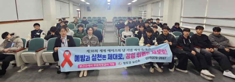 [뉴스다컴] 청도군은 제38회 세계 에이즈의 날(12월 1일)을 맞아, 지난 2일 풍각면 소재 경북드론고등학교, 청도읍 소재 청도 고등학교 3학년 재학생 145명을 대상으로 에이즈 예방 교육을 실시했다.