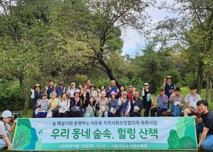 [뉴스다컴] 수원시 권선구 서둔동 지역사회보장협의체는 지난 18일, 관내 어르신 20명을 모시고 서울대농대 수원수목원에서‘우리 동네 숲속, 힐링 산책’숲 체험 나들이를 진행했다.