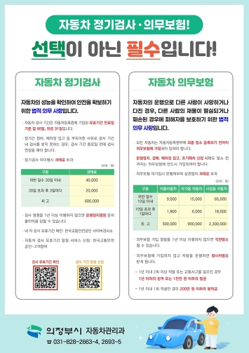 [뉴스다컴] 의정부시는 자동차 정기(종합)검사와 의무보험 가입 등에 대한 지속적인 홍보를 전개하고 있다.