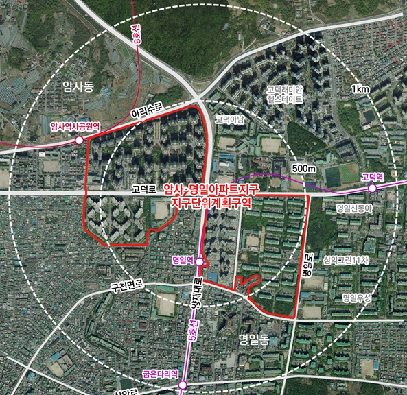 | ▲ 암사·명일아파트지구 지구단위계획구역 위치도 |