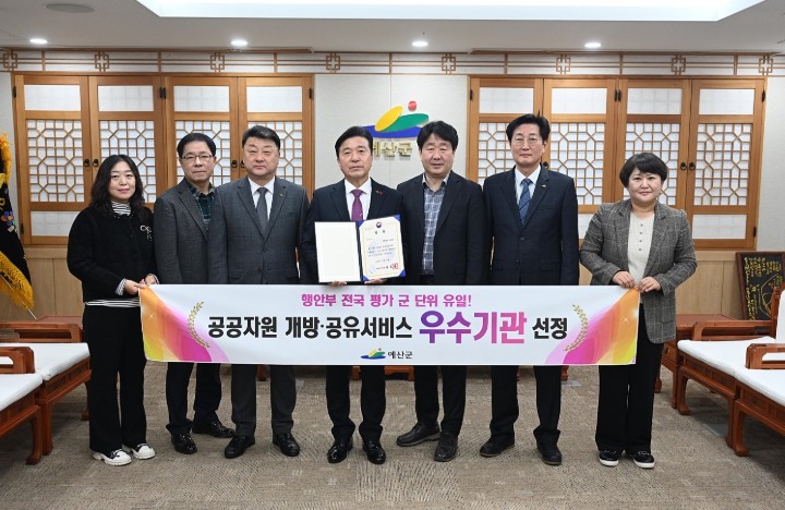 [뉴스다컴] 예산군은 행정안전부가 주관한 ‘2025년 공공자원 개방·공유서비스 실적평가’에서 우수 지자체로 선정돼 행정안전부 장관상을 수상했다고 밝혔다.