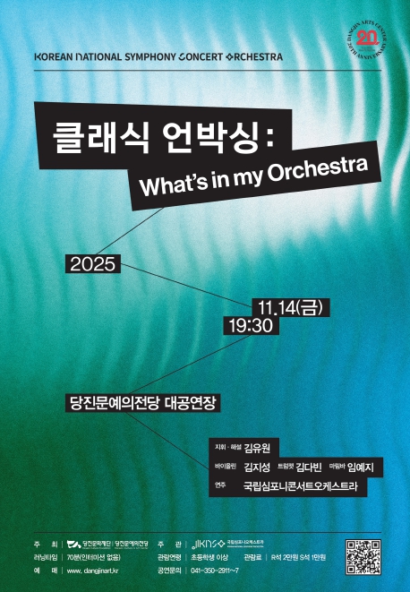 [뉴스다컴] (재)당진문화재단·당진문예의전당(대표이사 이원철)은 오는 11월 14일 금요일 오후 7시 30분, 당진문예의전당 대공연장에서 국립심포니콘서트오케스트라(이하 KNCO) 초청 공연‘클래식 언박싱 : What’s in my Orchestra’를 선보인다.