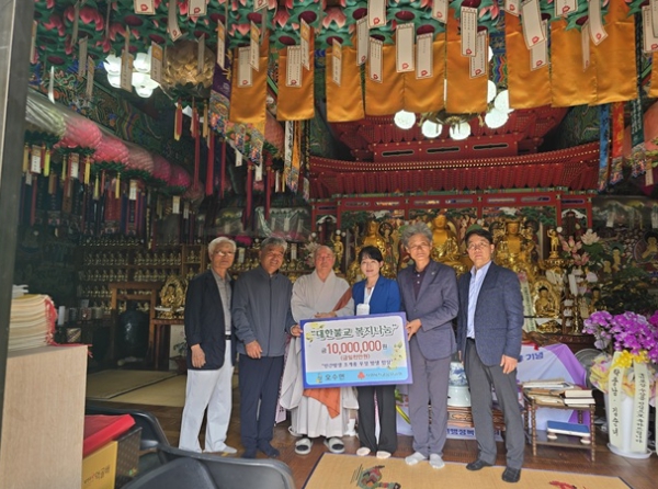 [뉴스다컴] 남양주시 진건읍에 소재한 명덕사 주지 우정 스님이 오수면 지역 복지 사업을 위해 사용해 달라며 지난 17일 오수면에 1천만 원을 기탁했다.