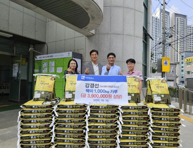 [뉴스다컴] 수원시 장안구 정자1동에 소재하는 SK마이크로웍스 소속 강경선 부장은 민족의 대명절인 추석을 맞아 지역 내 어려운 이웃들에게 따뜻한 나눔을 전하기 위해 지난 30일 정자1동행정복지센터에 쌀 1,000kg을 기부했다.