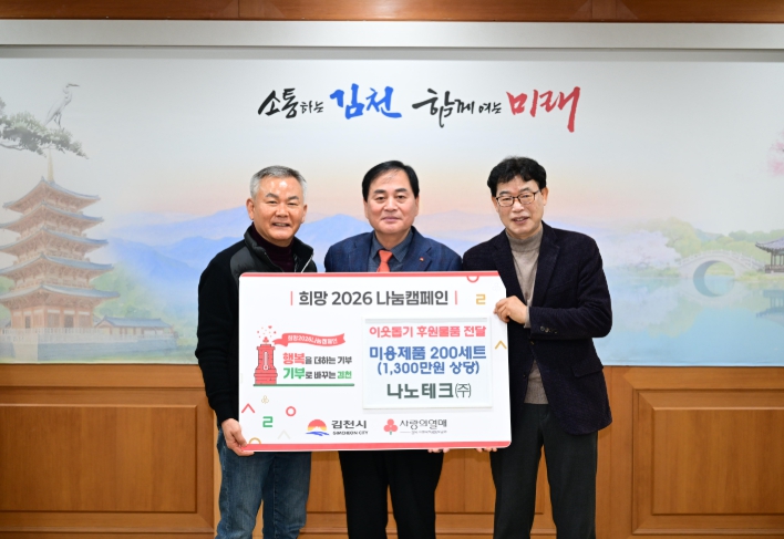 [뉴스다컴] 김천시는 지난 23일, 나노테크㈜(대표 김정헌)으로부터 어려운 이웃을 위한 미용 제품 200상자(1,300만 원 상당)를 전달받았다고 밝혔다.