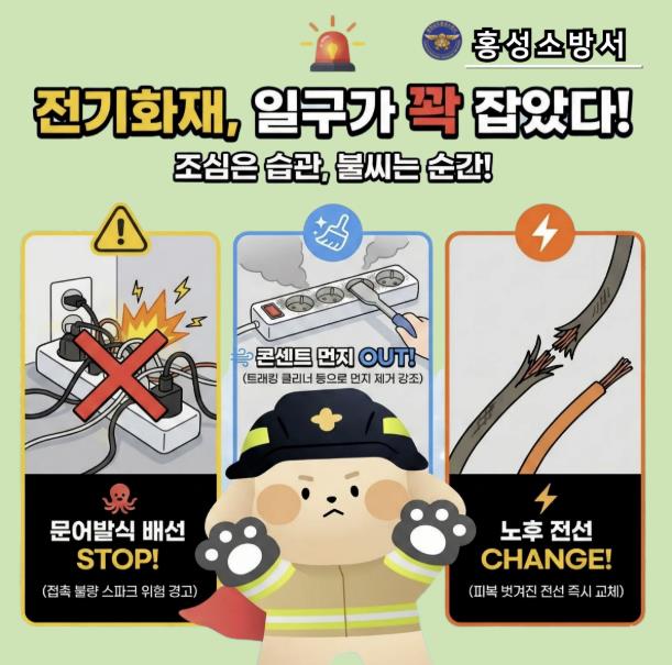 [뉴스다컴] 홍성소방서는 겨울철 난방기기 사용 증가로 전기화재 발생 위험이 높아짐에 따라, 전기화재 예방을 위한 집중 안전관리를 추진한다고 밝혔다.