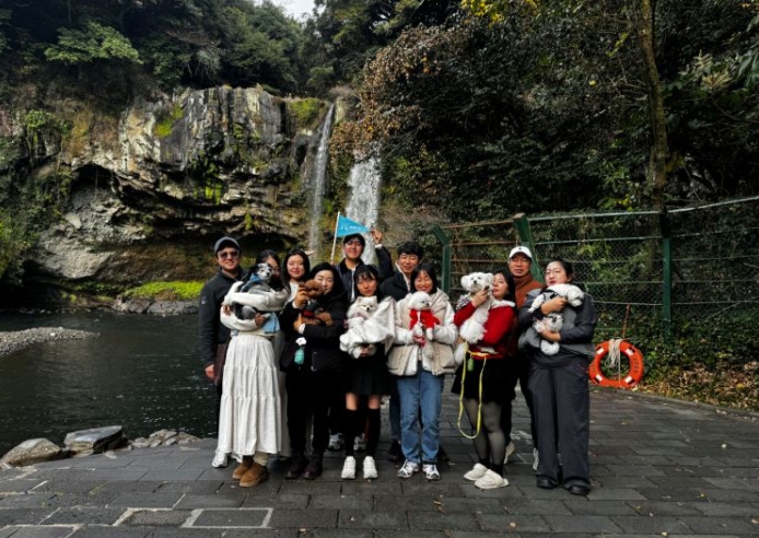[뉴스다컴] 서귀포시는 12월 23일 반려동물 동반 관광상품을 운영하는 H여행사 일행 10명과 반려동물 6마리가 천지연폭포를 방문했다고 밝혔다.