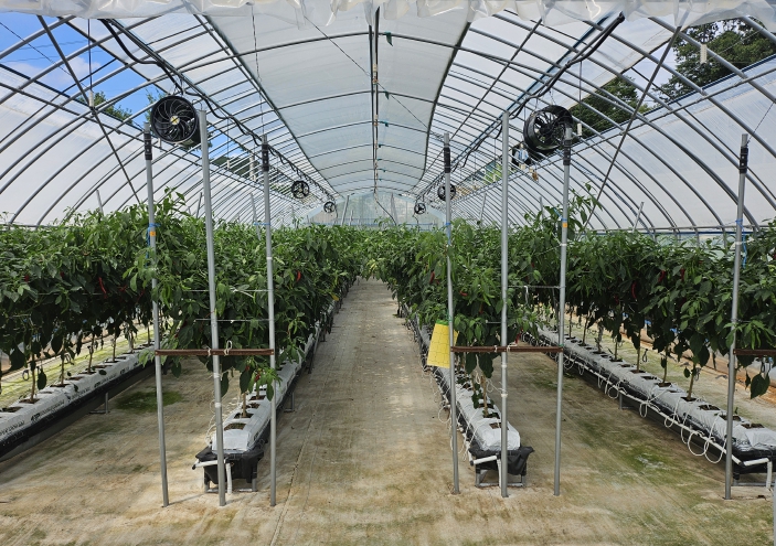 군은 노지 고추 자동 관수‧관비 시스템 활용, 바이오차 차등 시용 재배, 고추 비가림(시설) 양액재배 등 다양한 신기술을 접목한 실증을 통해 기후변화 시대의 안정적 고추 생산 체계 구축에 나서고 있다.