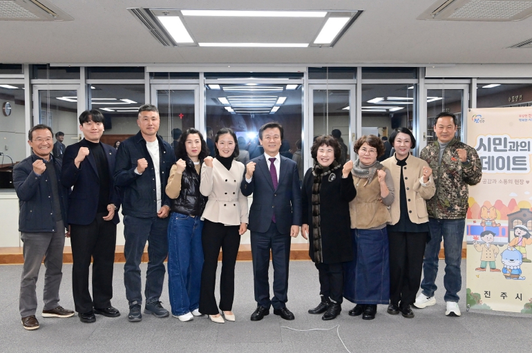 [뉴스다컴] 조규일 진주시장은 25일 시청 5층 상황실에서 ‘진주드림쇼핑몰’ 우수업체와 ‘11월 시민과의 데이트’ 시간을 가졌다.