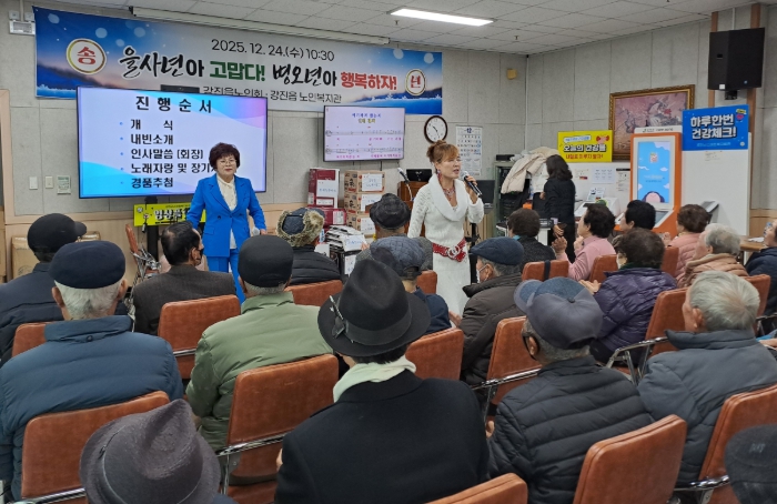 [뉴스다컴] 강진군 강진읍노인회(회장 김승복)가 지난 24일 강진읍 노인복지관 2층 강당에서 150여명의 어르신들이 참석한 가운데 2025년 송년행사를 성대히 마쳤다.