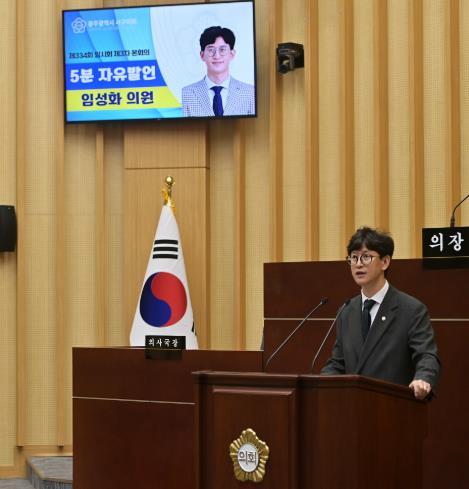 [뉴스다컴] 광주 서구의회 임성화 의원이 24일 제334회 임시회 제3차 본회의에서 ‘5분 자유발언’을 통해 '4계절 쾌적한 착한 보행환경 조성을 위한 종합적인 방안'을 제안하며 적극적인 개선을 촉구했다.