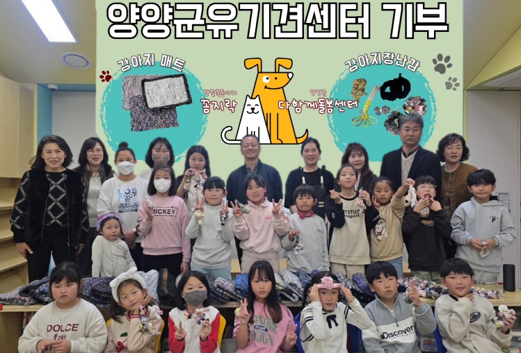 한편, 다함께돌봄센터 소속 아동들은 지난 2월 양양군 농업기술센터 농정축산과와의 연계를 통해 양양 유기견보호센터를 방문해, 유기견 보호의 필요성을 강조하는 피켓을 제작하고 강아지용 수제 쿠키를 만들어 전달하는 등 유기견 사랑을 실천한 바 있다.