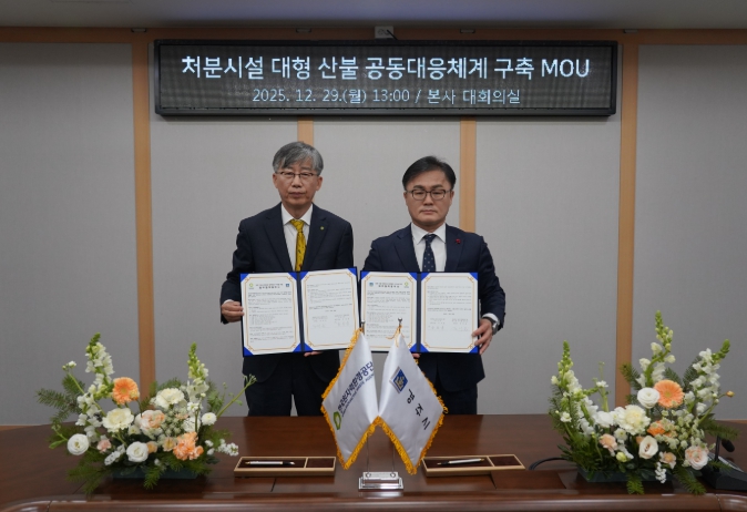 [뉴스다컴] 경주시는 지난 29일 한국원자력환경공단과 산불 발생 시 신속하고 체계적인 대응을 위한 ‘산불 공동대응체계 구축 업무협약(MOU)’을 체결했다.