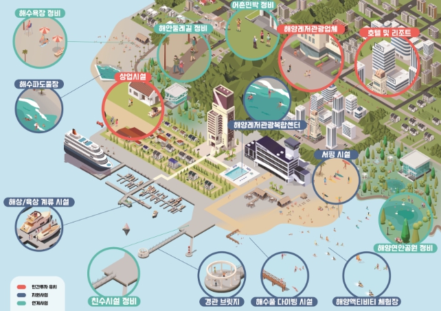 올해 새롭게 추진하는 복합해양레저관광도시 조성사업은 지역의 고유 매력을 활용하고, 민간투자와 연계하여 놀거리(레저), 볼거리(관광), 쉴거리(휴양) 등 해양레저관광 기능을 집적해 대규모 해양관광도시를 조성하는 사업이다.