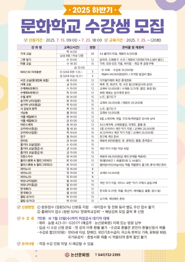 강의 계획 등 기타 자세한 사항은 논산문화원 누리집을 통해 확인하거나 전화로 문의하면 된다.