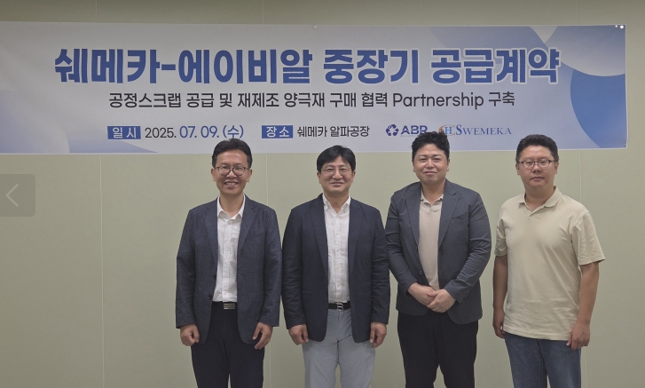 에이비알은 이차전지 재활용 전문기업으로, 이번 계약을 통해서 배터리 제조공정에서 발생한 스크랩을 활용해 생산한 재제조 양극재 및 음극재를 쉐메카에 공급할 예정이다.