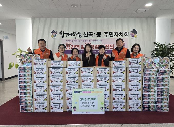 [뉴스다컴] 의정부시 신곡1동주민센터는 11월 17일 신곡1동 주민자치회가 ‘100일간 사랑의 릴레이 배턴 잇기’에 동참해 취약계층을 위한 김장김치 40상자(5kg 단위)와 컵라면 40상자(6개입)를 기부했다고 밝혔다.
