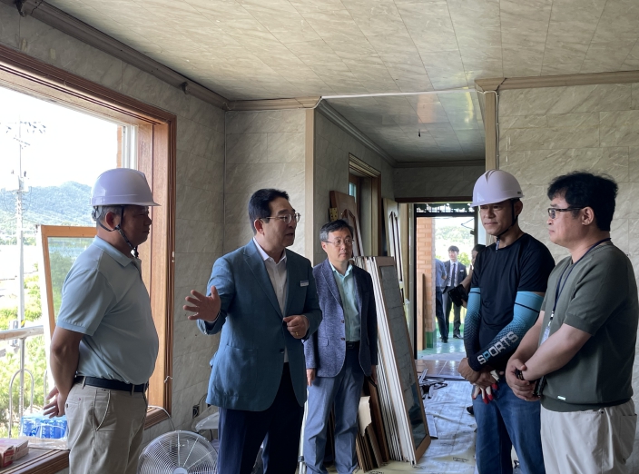 공사 첫날 현장을 찾은 황 군수는 주택을 둘러보고 관계자들을 격려했으며 해당 가정에 따뜻한 응원의 메시지도 전했다.