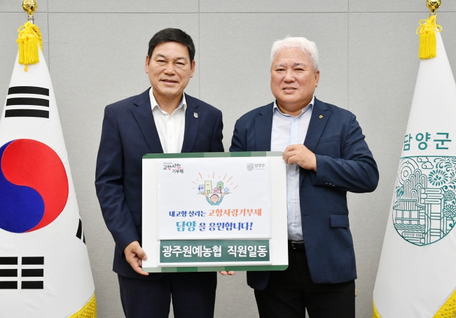 [뉴스다컴] 담양군은 17일 광주원예농협(조합장 정일기)이 임직원들과 함께 고향사랑기부제를 통한 지역 나눔에 동참했다고 밝혔다.