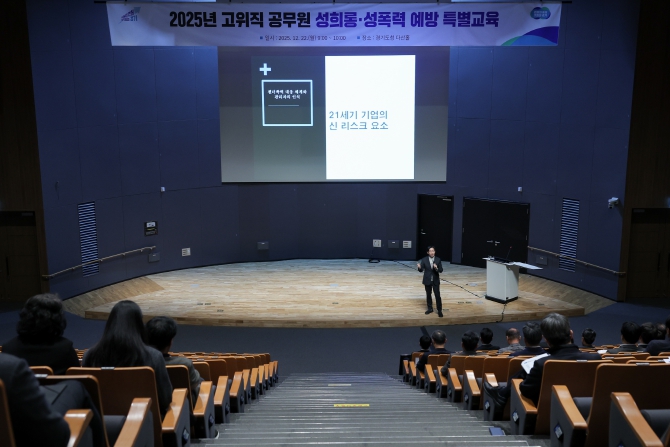 [뉴스다컴] 경기도는 22일 경기도청 다산홀에서 김동연 경기도지사를 포함해 고위직 공무원 약 50명을 대상으로 ‘직장 내 성희롱·폭력 예방 특별교육’을 실시했다.