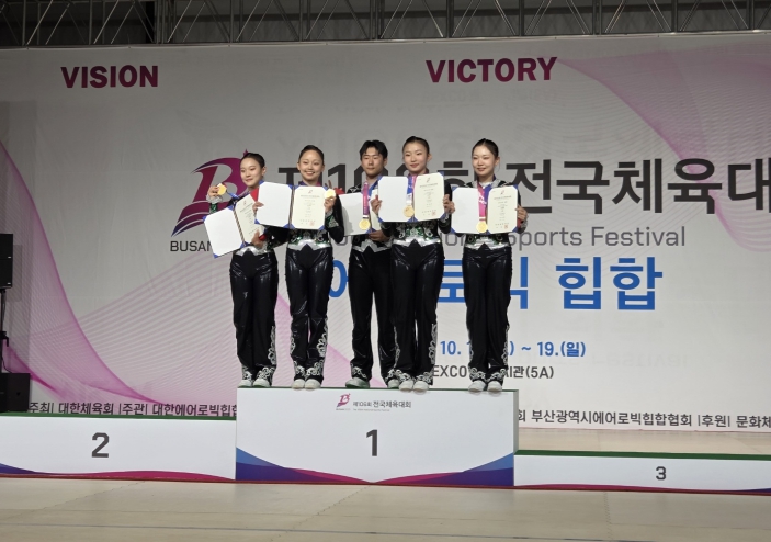 특히, 에어로빅·힙합 종목에서 눈부신 성과가 이어지고 있다. 부산동여자고등학교(교장 김혜선) 김지윤, 부산체육고등학교 김예담, 김채원, 최현서, 구지윤 선수로 이루어진 부산선발 팀이 금메달을 획득했다.