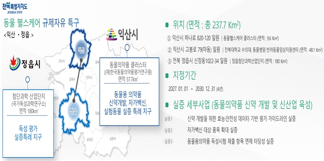 [뉴스다컴] 전북특별자치도가 차세대 동물의약품 산업 육성을 위한 규제자유특구 실증사업 구체화에 나섰다고 8일 밝혔다.