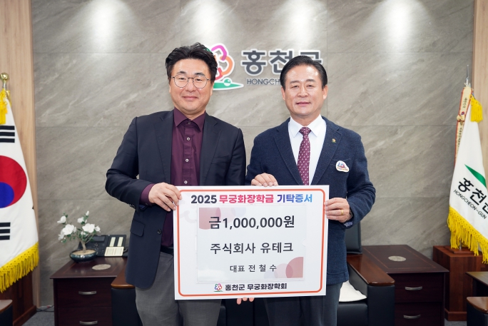 주식회사 유시티(대표 김남갑)는 2024년에 이어 올해도 200만 원을 기탁했으며, “홍천의 학생들이 학업에 전념할 수 있고 생활에 도움이 되기를 바라는 마음으로 무궁화장학금을 기탁하게 됐다”라고 전했다.