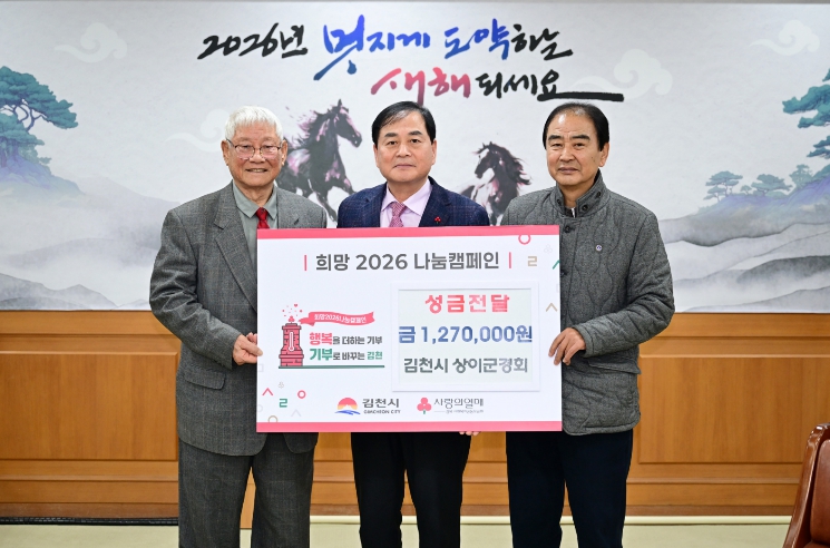[뉴스다컴] 김천시는 1월 19일 상이군경회 김천시지회(회장 선종두)로부터 희망2026나눔캠페인 성금 127만 원을 기탁받았다고 밝혔다.