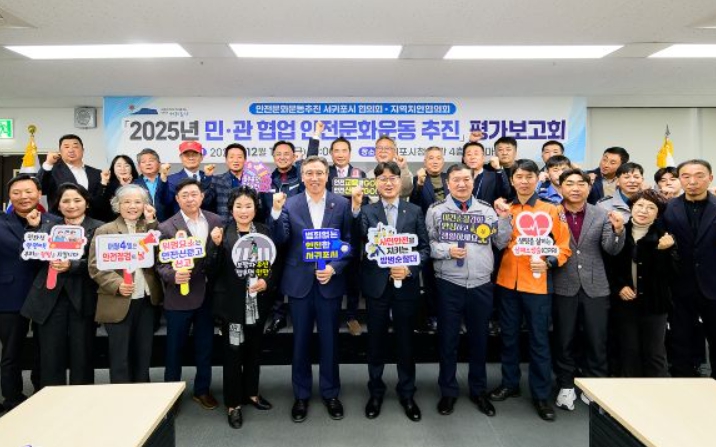 [뉴스다컴] 서귀포시는 12월 19일 10시 시청 별관 4층 별넷마당에서 오순문 서귀포시장을 비롯해 교육지원청‧경찰서‧자치경찰단‧소방서‧해양경찰서 등 유관기관장과 오창훈 시 주민자치위원회협의회장, 시민사회단체장 등 안전문화운동추진 서귀포시협의회 위원 30여 명이 참석한 가운데 ‘2025년도 민‧관협업 안전문화운동 추진 평가보고회’를 개최했다.