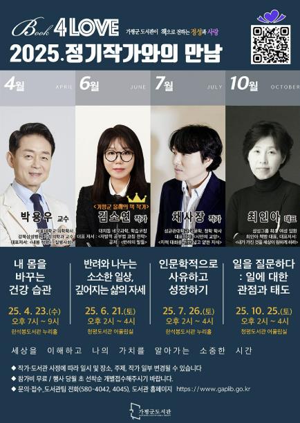 이번 강연은 가평군 평생교육사업소가 운영하는 ‘2025년 정기 작가와의 만남’ 세 번째 행사로, 군민들에게 인문학적 소양을 키우고 독서문화를 확산하기 위해 기획됐다.