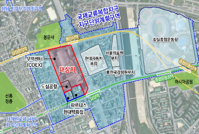 대상지 일대는 1980년대 ‘한국종합무역기지 건설 기본계획 수립’ 이후 컨벤션센터, 도심공항터미널, 호텔, 백화점, 쇼핑몰, 공연장, 업무시설 등 다양한 인프라를 기반으로 서울 대표 국제교류·업무·MICE 중심지로 성장했다.