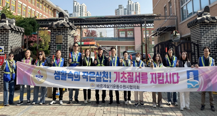 [뉴스다컴] 수원시 영통구 바르게살기운동협의회는 지난 11월 7일, 매탄동 산남초등학교 앞에서 ‘기초질서 확립 캠페인’을 실시했다. 이는 일상 속에서 질서와 배려를 실천하는 시민 문화를 조성하고, 더불어 깨끗하고 안전한 생활환경을 만들어가기 위한 취지다.