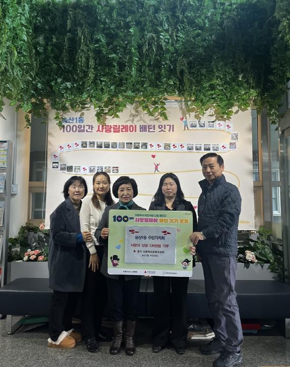 [뉴스다컴] 의정부시 송산1동주민센터는 12월 11일 송산1동 주민자치회가 성금 120만 원을 기탁하며 ‘100일간 사랑릴레이 배턴 잇기’에 동참했다고 밝혔다.