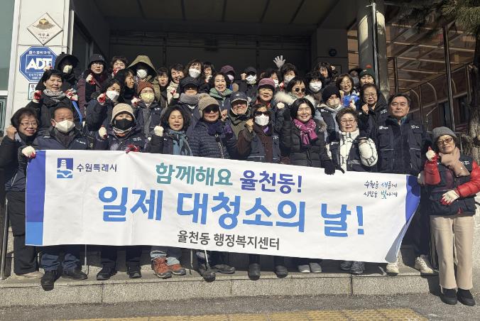 [뉴스다컴] 수원시 장안구 율천동 행정복지센터는 지난 6일, 민족 최대의 명절인 설 연휴를 대비하여 통장협의회 및 직원 등 60여 명이 함께 참여하여 설맞이 일제 대청소를 실시했다.