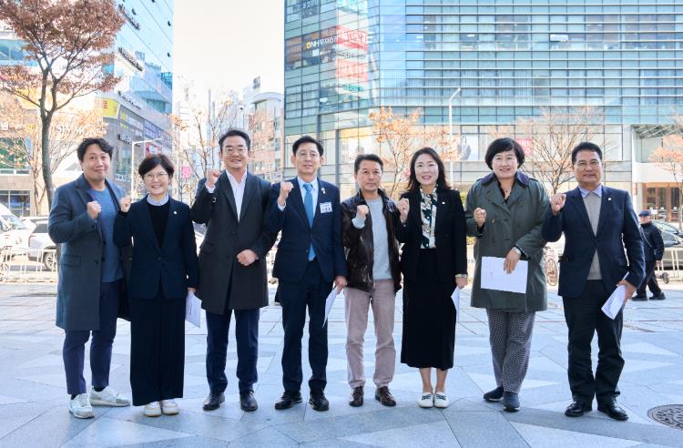 [뉴스다컴] 대전 서구의회 도시건설위원회는 21일 갤러리아 타임월드 랜드마크 광장을 방문해 고정광고물 전수조사 용역의 시연을 확인하고 사업 진행 현황을 점검했다.