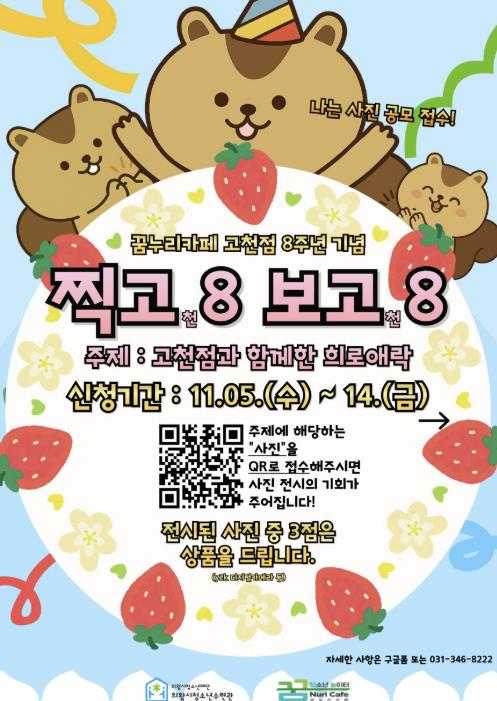 [뉴스다컴] 의왕시청소년재단 산하 꿈누리카페 고천점이 개소 8주년을 맞아 추진 되는 청소년과 지역 주민이 함께하는 기념 프로그램‘찍고8, 보고8’의 참가자를 11월 14일까지 모집한다.