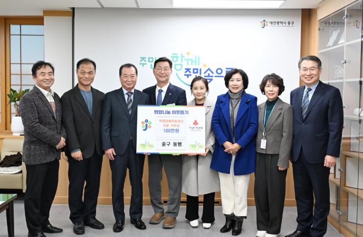 [뉴스다컴] 대전 중구는 지난 8일 ‘중구 동행’에서 학대피해아동쉼터 입소아동을 위한 기부금 100만 원을 기탁했다고 밝혔다.