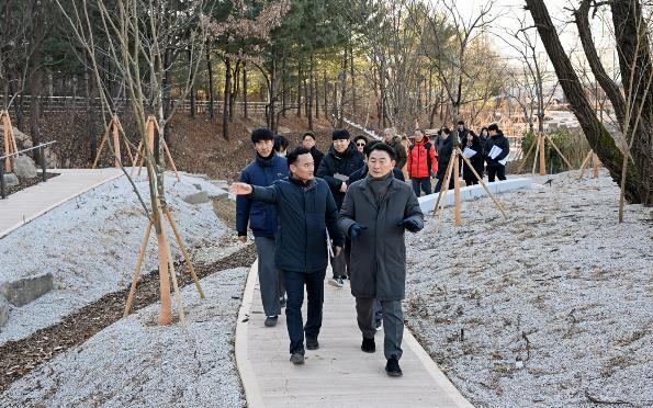 [뉴스다컴] 의정부시는 2026년 병오년 새해를 맞아 1월 8일 녹지 인프라 확충을 위한 주요 사업 대상지를 현장 점검했다. 점검 대상지는 ▲장암동 실외정원 ▲용현산업단지 완충녹지 산책로 및 가로숲길 조성 사업지 ▲민락동 감성쉼터 등이다. 이번 점검은 도심 속 쉼터와 실외정원 확충, 안전한 보행환경 조성, 산림 명소 발굴 등 녹지 인프라 조성 사업의 추진 현황을 점검하고, 시민들이 일상에서 녹지 공간을 보다 쉽게 이용할 수 있도록 추진 중인 ‘도시숲 프로젝트’의 사업 방향과 현장 여건을 확인하기 위해 진행됐다.