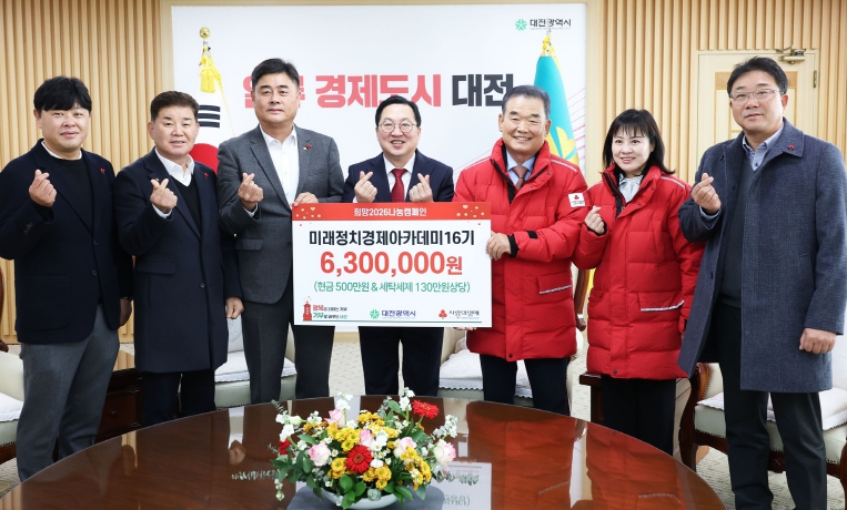이장우 대전시장은 “미래정치경제아카데미 수료생들의 따뜻한 실천에 감사하다”라며 “정성 어린 기탁물품을 각 세대에게 전달하겠다”라고 말했다.
