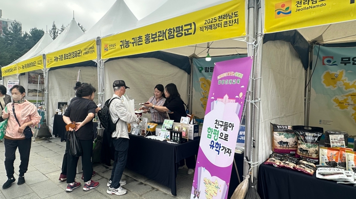 함평군은 지난 26일부터 28일까지 3일간 서울시 노원구 등나무근린공원에서 열린 ‘2025년 전라남도 직거래장터 큰잔치’에서 귀농·귀촌 홍보관을 운영했다고 29일 밝혔다.